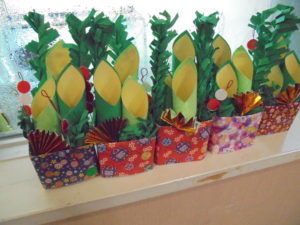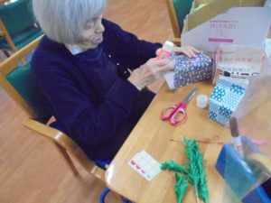 ゲスト様には、牛乳パックの周りに貼る柄を選んでいただき、張り付ける作業など担当して頂きました?