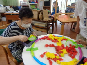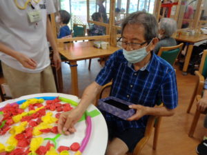 今日は千本引きと金魚すくいをレクで提供させていただきました?