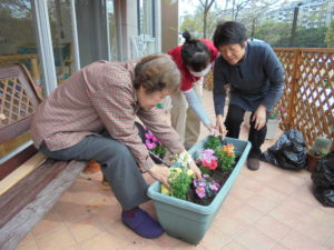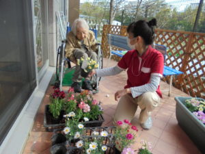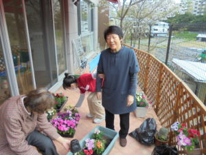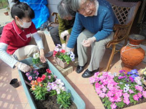 先日、ロ・スカーロあおまだにデイサービスで初めてガーデニングを行いました??