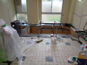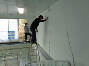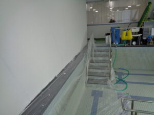 プール・浴室のひび割れをパテで埋めペンキを新しく塗りました。