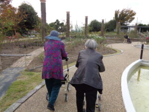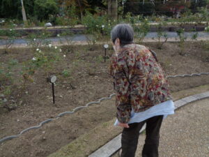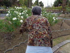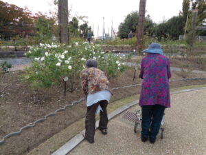 ゲスト様も久しぶりのお出かけレクリエーションでバラを見て笑顔でした。園内は広いのでゆっくり歩きながら鑑賞です。