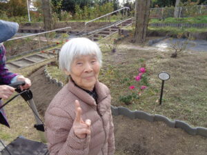 11月12日(水)何年振りかのお出かけレクリエーションです。今回は茨木市の若園公園バラ園に行きました。この日は快晴で気温も穏やかでした。