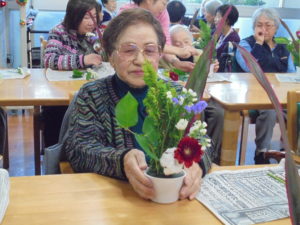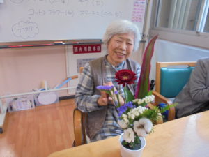 先日、ロ・スカーロあおまだにデイサービスで初めてフラワーアレンジメント教室を開催しました!??