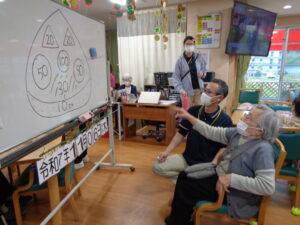 11月も終わりです。来週から真冬の寒さが到来するとの事です。あおまだにDSでは寒さに負けない身体作りとレクリエーションで盛り上げています。ゲスト様も真剣に楽しく取り組んでおられます。ほんの一部をご紹介させていただきます。