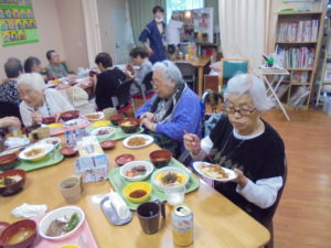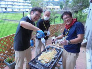 お楽しみのお昼ご飯は、特製バーベキュー、うな丼、焼きそば、職員用に作っていた焼きおにぎりも召し上がられました!