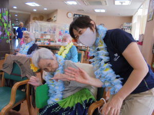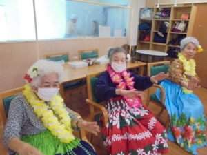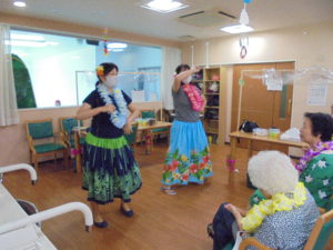 前回に引き続いて、好評だったフラダンスのレクリエーションを行いました。
