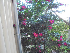 窓の外にはさざんかが咲いていましたが、そろそろ時期も終わりですね?