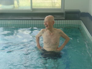 10月に入り早くも中半です。気候の変動もありますが、ようやく過ごしやすい時期になりました。デイサービスあおまだにのプールでは爽やかに、楽しく笑顔でプールリハビリを行っています。