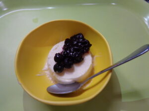 ブルーベリーをジャムにして、豆乳ブラマンジェと共に💛
