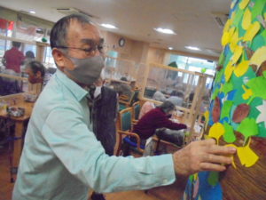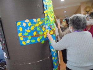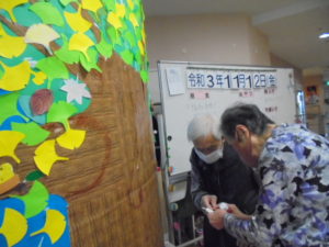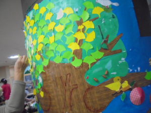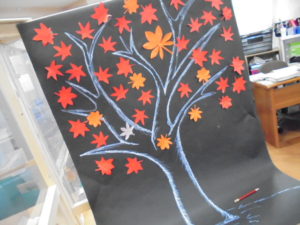 10月にリンゴの壁面製作をしていた、あおまだにの木が11月は大変身します✨