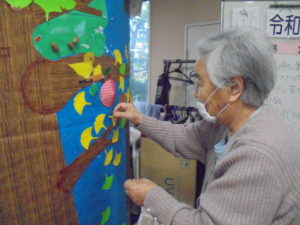 機能訓練のベッドの横の窓に飾っている壁面もゲスト様から好評です?