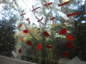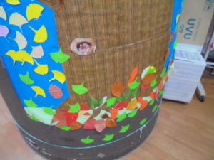 パっと見実物の葉っぱかな~?と思いますが、画用紙で作られている落ち葉?