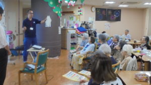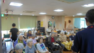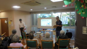 9/18(水)にロ・スカーロあおまだにデイサービスフロアに箕面市防災担当の職員さんに来ていただき、1人暮らしをされている高齢者向けに地震や災害時の対応を講習していただきました!
