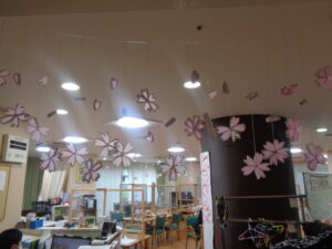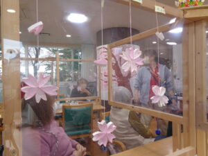 4月に入り温かい日が続きました。どこも桜満開ですね。既に葉桜になりつつある木も見られます。あおまだにフロアーでは今が桜満開です。桜吊るし飾り・桜リースと桜祭りです。