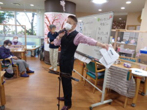 もう気分も最高潮です。職員による歌唱ショーで盛り上げました。