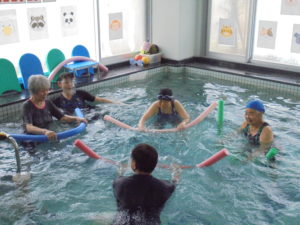 音楽に合わして楽しく水中運動をする事が目的です。皆さん笑顔です。?