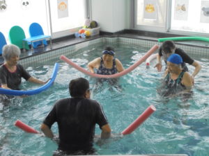 うきうき棒を使っての水中運動、結構体力つかいますよ?