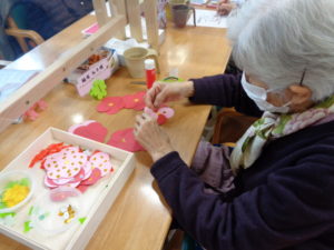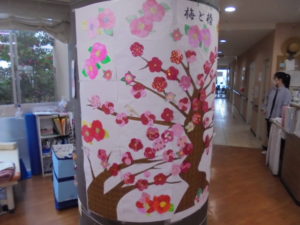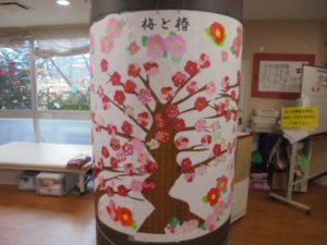 デイサービスでは梅と椿の壁面作成を行いましたのでご報告させていただきます。