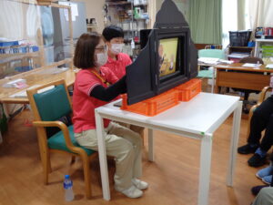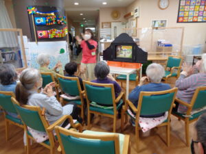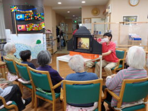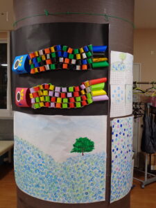 5月に入りましたね! 世間では長期ゴールデンウィーク真っ最中です。うらやましいですが、あおまだにフロアーでは鯉のぼりの壁面作成と紙芝居イベントを開催いたしました。テレビや映画・なんでもあるご時世ですが、紙芝居は懐かしいし楽しいです。皆さん紙芝居に集中して大拍手です。