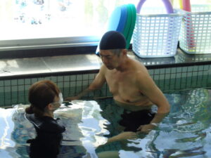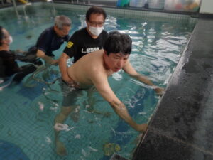 ゲスト様の既往歴を考慮し水の特性を最大限に引き出したリハビリメニューを実施しています。泳ぎを希望されるゲスト様や陸上では出来ない運動を水中で希望されるゲスト様。また股関節や膝・麻痺等の障害のあるゲスト様は身体を浮かした状態で様々なトレーニングを行う事ができます。皆さん笑顔で頑張っておられます。プールトレナーもしっかりフォローしてまいりますのでこれからも継続して頑張りましょう!!