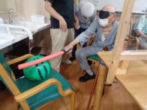 早くもお盆がすぎ夏も終わりかな・・・と思いますが、蒸し暑さは辛いですね あおまだにフロアーでは夏の定番スイカ割りゲームをしましたのご報告いたします。