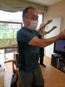 9月に入りましたね。少しずつですが秋の気配も感じ出しました。しかしながらまだまだ暑いのが現状です。あおまだにフロアーでは張り切って体操してます。一部ですがご紹介させていただきます。