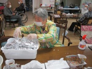 さつまいもをアルミで巻くのを手伝ってくれました!