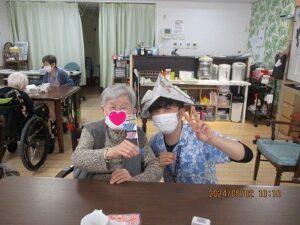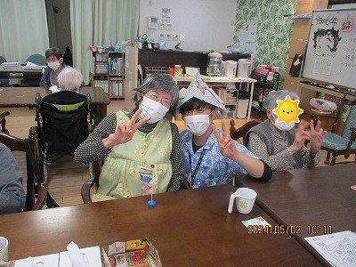 5/5はこどもの日という事で、手作りのかぶとを被ったスタッフと写真を撮りました📸