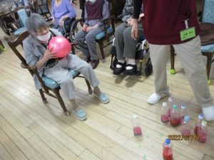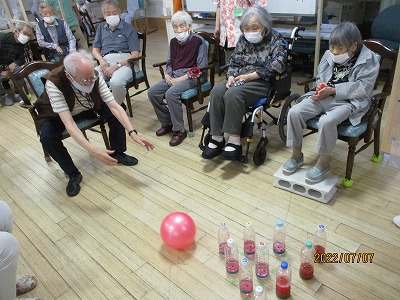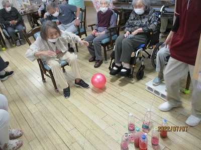 スイカ柄の重さの違うピンを使ったボーリング