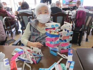 様々な大きさの牛乳パックをバランスを保ちながら積み上げていくというもの。