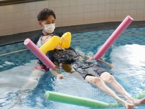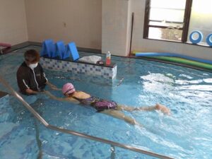 ぷか~と浮き、浮力を利用して関節と関節にゆとりを持たせることで腰が伸びたり痛みを一時的に和らげる効果があります!