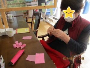 今日は花紙で桜の飾りを作って下さいました!