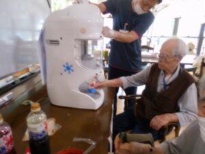 今日は「かき氷🍧」 勢いが強いかき氷機で挑戦!