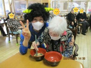 鬼と写真! と思いきや、ゲームに真剣で気づいていませんね