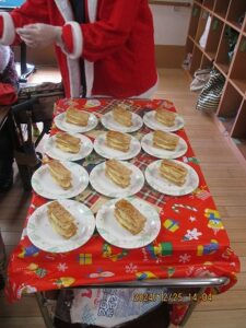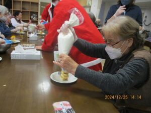 パイ生地に生クリームを付けたり、イチゴやみかんをトッピングしたりととても楽しまれました!