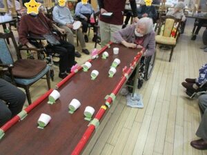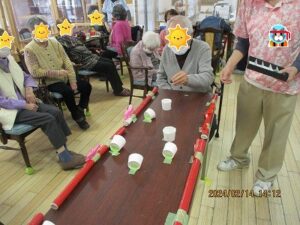ビー玉を転がし♥の書いたコップを立てると点数になります!