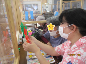 今日はポインセチアを折り紙で作って頂きました!