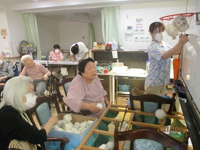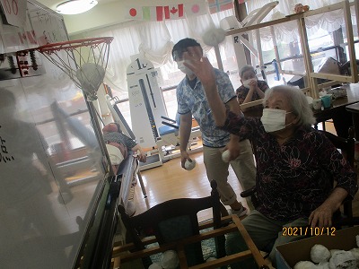 合計得点を計算し、勝負をつける玉入れは二人一組で行います