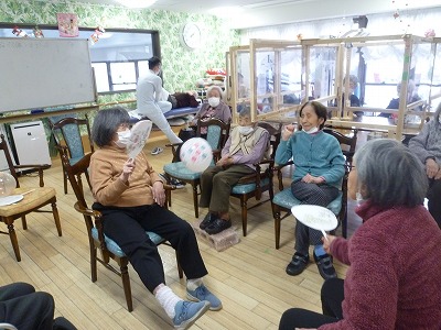 で、羽の代わりに風船を打ち合って頂きました
