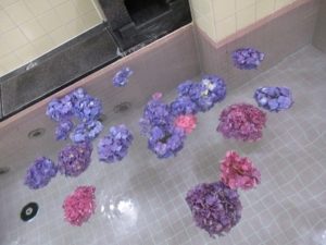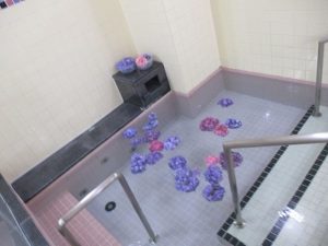 浴槽の中だけではなく、至る所に綺麗なアジサイを配置?