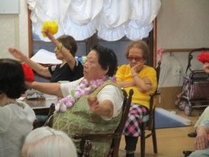 午後からは、座ったままできるフラダンスを踊りました??