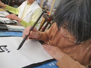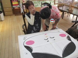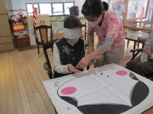 今日は正月にちなんで「福笑い」と「書き初め」をみなさまに参加して頂きました!