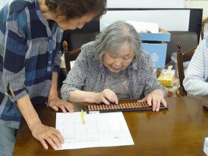 ボランティアの方が教室に到着する前から皆さんそろばんをパチパチ?