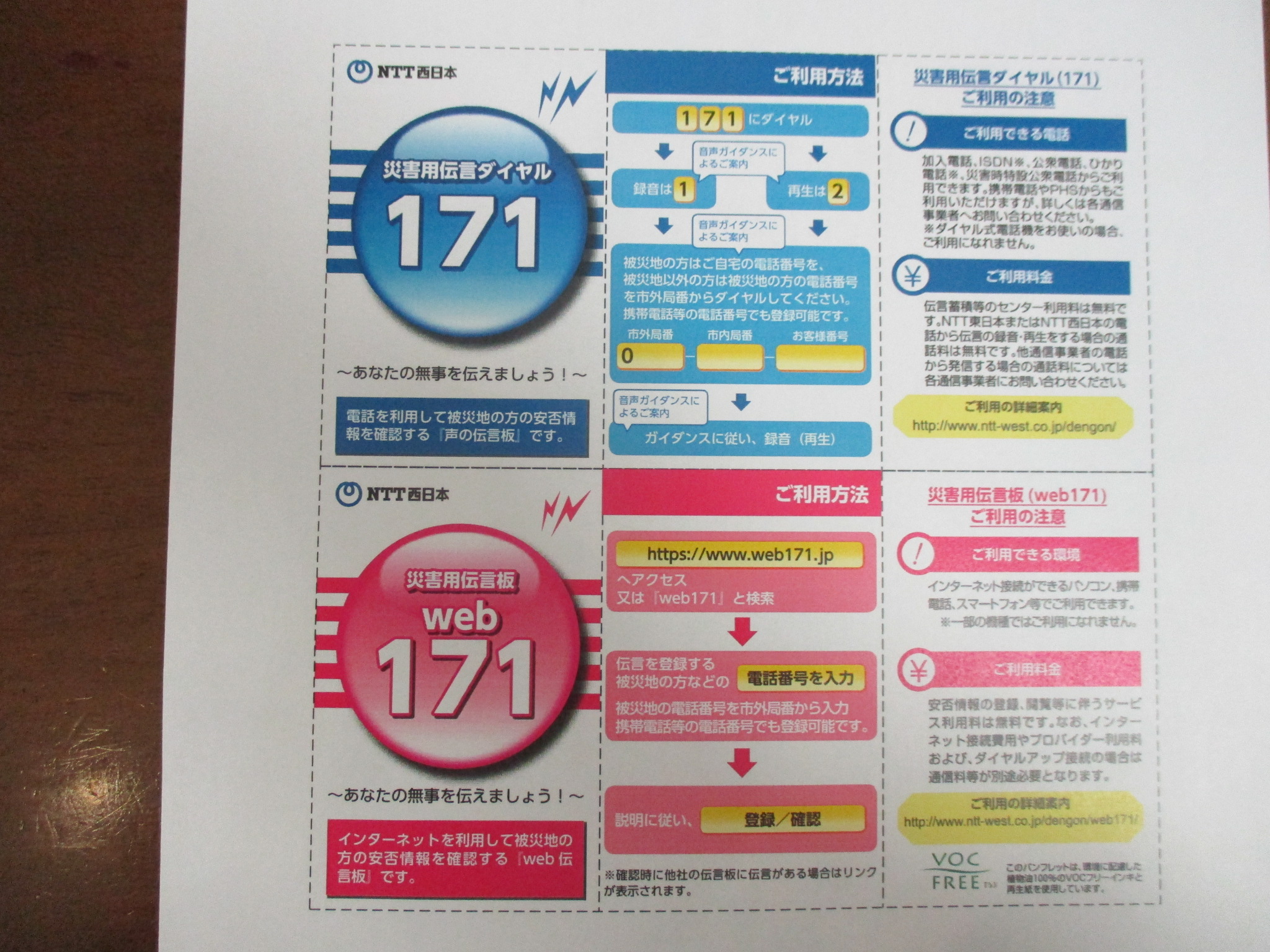 緊急避難場所や災害伝言ダイヤルの番号の確認や、