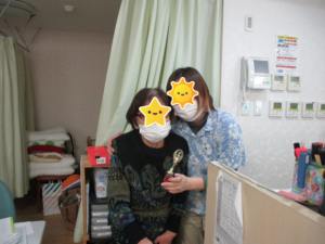 ゲームで好成績を収め仲のいいスタッフと撮った1枚