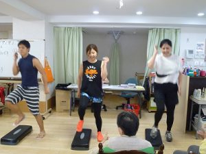 ボクササイズ、青竹ビクスの2部構成でその後はスタッフによるデモストレーションがあり、