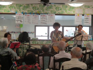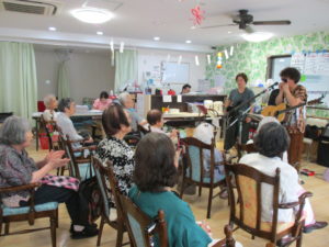 ハーモニカとピアノに合わせて皆さんで”ふるさと”を合唱したり、