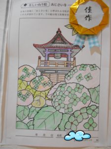 素敵な作品にデイフロアの前を通られる方がぬりえを見られ花のぬりえを「これは何の花」と聞かれたりと好評です?
