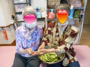 先週ラ・ソーラもりぐちデイサービスではたわわに実ったそら豆の収穫を行いました?