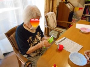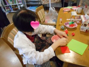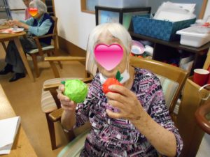 ラ・ソーラもりぐちデイサービスでは先週、りんご?の小物入れを作りました?